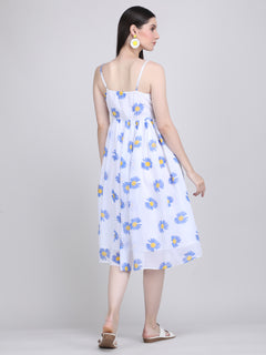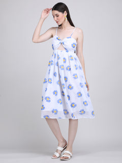 Color:-The color of this dress is White base with Blue and Yellow Daisy floral print.
