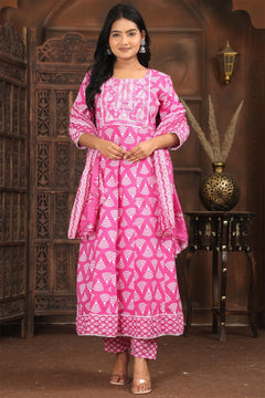 Elegant Ethnic Printed Kurta Pant Dupatta Set – Multi Color Collection