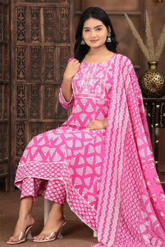 Upgrade your ethnic wardrobe with this beautifully printed kurta set featuring a coordinated pant and matching dupatta. Designed with intricate traditional motifs and a comfortable straight-fit silhouette, this outfit blends elegance with everyday comfort. Crafted from soft, breathable fabric, it is perfect for festive gatherings, casual outings, and family functions. Available in multiple vibrant colors.