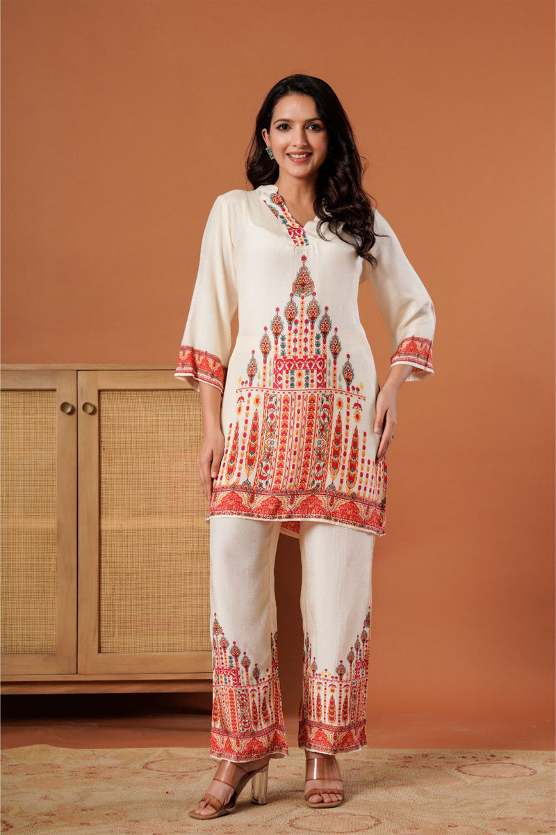 Ivory Printed Kurti Pant Co-Ord Set