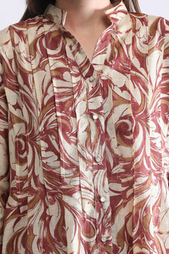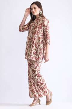 Step into effortless sophistication with this Marble Swirl Printed Co-ord Set, designed in a luxurious beige base adorned with artistic swirl patterns in warm earthy tones. This premium two-piece outfit includes a button-down long shirt and matching wide-leg pants, offering the perfect blend of comfort, elegance, and contemporary fashion.
