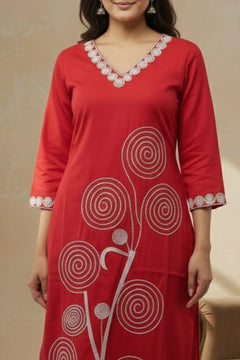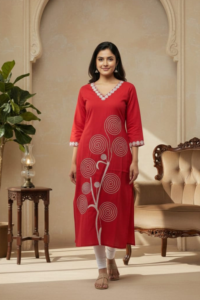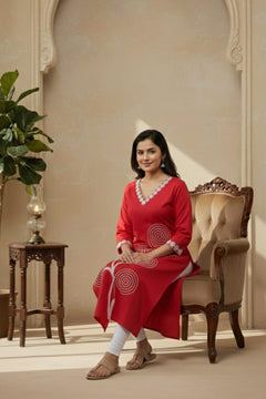 Elevate your everyday ethnic style with this elegant Spiral Bloom Straight Kurta. Designed with a graceful swirl tree motif print and delicate lace detailing on the neckline and sleeves, this kurta blends simplicity with sophistication. Crafted from soft, breathable fabric, it offers all-day comfort while maintaining a flattering straight fit. Perfect for office wear, casual outings, or festive gatherings, this versatile piece is available in multiple vibrant shades to suit every mood.