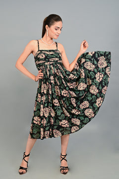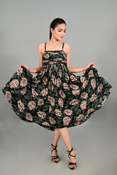 Elevate your summer wardrobe with The Noir Flora Strappy Midi Dress, crafted from lightweight cotton georgette for a breezy, comfortable fit. Featuring a straight neckline and a fitted smocked bust, this midi dress offers gentle stretch and support while maintaining a flattering silhouette. Delicate strappy detailing adds a chic, effortless charm, perfect for evening get-togethers, date nights, or summer garden parties. Its flowy, mid-length skirt enhances movement and grace, creating a timeless yet playful aesthetic. Designed for women who love comfort without compromising style, this dress is an ideal choice for warm-weather occasions that call for understated elegance.