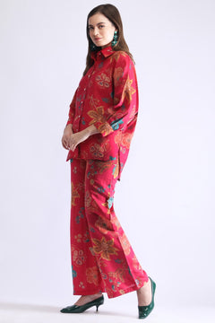 Women’s Floral Shirt Co-ord Set – Casual Top & Wide-Leg Pants
