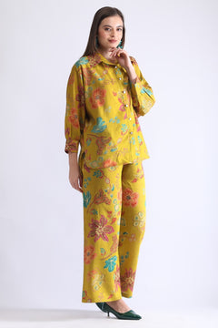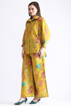 The matching wide-leg pants offer a flattering silhouette while allowing smooth movement and all-day comfort. Available in two refreshing shades—Mustard Floral and Pink Floral—this set adds a splash of color and charm to your wardrobe. Pair it with heels or flats for a chic, effortless look. .